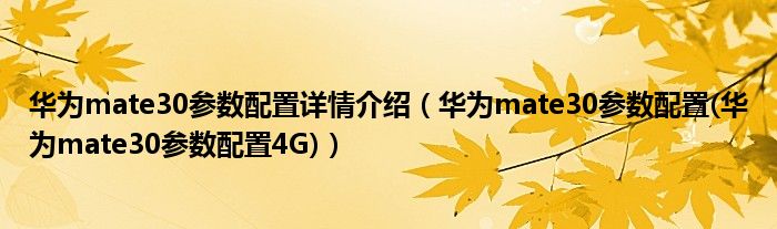 大家好,小常来为大家解答以上问题。华为mate30参数配置详情介绍,华为mate30参数配置(华为mate30参数配置4G)很多人还不知道,现在让我们一起来看看吧!