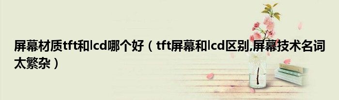 大家好,小常来为大家解答以上问题。屏幕材质tft和lcd哪个好,tft屏幕和lcd区别,屏幕技术名词太繁杂很多人还不知道,现在让我们一起来看看吧!