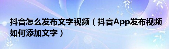 大家好,今天小悦来为大家解答以上问题。抖音怎么发布文字视频,抖音App发布视频如何添加文字很多人还不知道,现在让我们一起来看看吧!