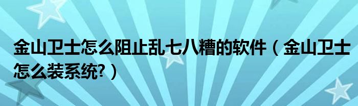 大家好,今天小悦来为大家解答以上问题。金山卫士怎么阻止乱七八糟的软件,金山卫士怎么装系统?很多人还不知道,现在让我们一起来看看吧!