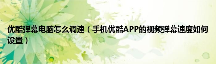 大家好,今天小悦来为大家解答以上问题。优酷弹幕电脑怎么调速,手机优酷APP的视频弹幕速度如何设置很多人还不知道,现在让我们一起来看看吧!