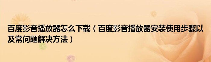 大家好,今天小悦来为大家解答以上问题。百度影音播放器怎么下载,百度影音播放器安装使用步骤以及常问题解决方法很多人还不知道,现在让我们一起来看看吧!