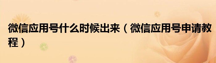 大家好,今天小悦来为大家解答以上问题。微信应用号什么时候出来,微信应用号申请教程很多人还不知道,现在让我们一起来看看吧!
