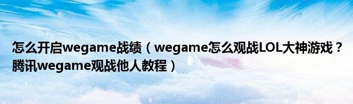 大家好,今天小悦来为大家解答以上问题。怎么开启wegame战绩,wegame怎么观战LOL大神游戏?腾讯wegame观战他人教程很多人还不知道,现在让我们一起来看看吧!