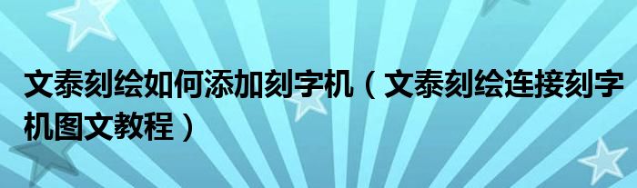 大家好,今天小悦来为大家解答以上问题。文泰刻绘如何添加刻字机,文泰刻绘连接刻字机图文教程很多人还不知道,现在让我们一起来看看吧!