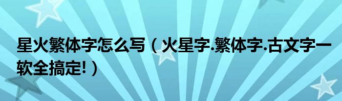 大家好,今天小悦来为大家解答以上问题。星火繁体字怎么写,火星字.繁体字.古文字一软全搞定!很多人还不知道,现在让我们一起来看看吧!