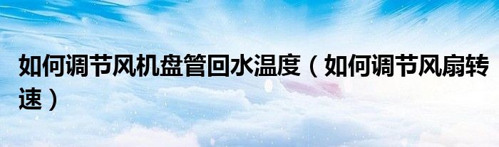 大家好,小飞来为大家解答以上问题,如何调节风机盘管回水温度,如何调节风扇转速很多人还不知道,现在让我们一起来看看吧!