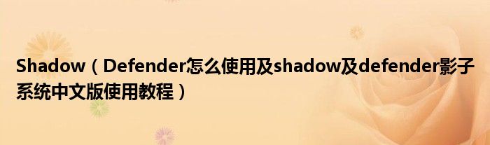 大家好,今天小悦来为大家解答以上问题。Shadow,Defender怎么使用及shadow及defender影子系统中文版使用教程很多人还不知道,现在让我们一起来看看吧!