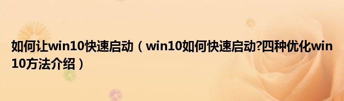 大家好,今天小悦来为大家解答以上问题。如何让win10快速启动,win10如何快速启动?四种优化win10方法介绍很多人还不知道,现在让我们一起来看看吧!
