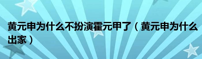 黄元申为什么不扮演霍元甲了,黄元申为什么出家这个很多人还不知道,小飞来为大家解答以上的问题。现在让我们一起来看看吧!