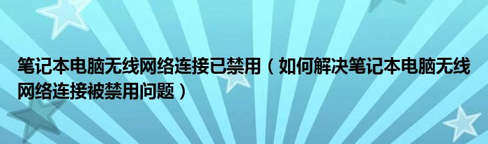 大家好,今天小悦来为大家解答以上问题。笔记本电脑无线网络连接已禁用,如何解决笔记本电脑无线网络连接被禁用问题很多人还不知道,现在让我们一起来看看吧!