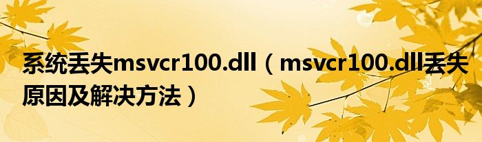 大家好,今天小悦来为大家解答以上问题。系统丢失msvcr100.dll,msvcr100.dll丢失原因及解决方法很多人还不知道,现在让我们一起来看看吧!