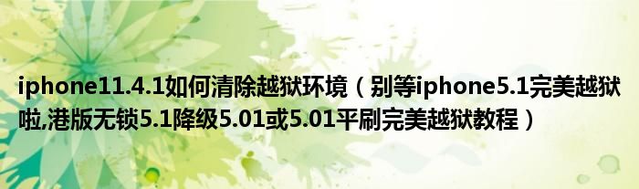 大家好,今天小悦来为大家解答以上问题。iphone11.4.1如何清除越狱环境,别等iphone5.1完美越狱啦,港版无锁5.1降级5.01或5.01平刷完美越狱教程很多人还不知道,现在让我们一起来看看吧!