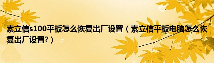 索立信s100平板怎么恢复出厂设置(索立信平板电脑怎么恢复出厂设置?)