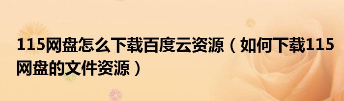 大家好,今天小悦来为大家解答以上问题。115网盘怎么下载百度云资源,如何下载115网盘的文件资源很多人还不知道,现在让我们一起来看看吧!