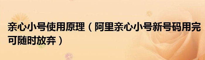 亲心小号使用原理 阿里亲心小号新号码用完可随时放弃