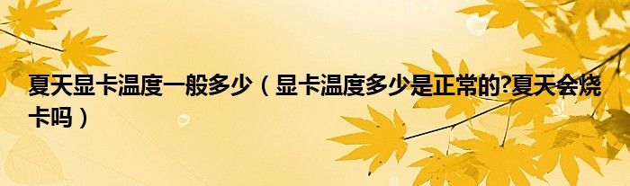 大家好,今天小悦来为大家解答以上问题。夏天显卡温度一般多少,显卡温度多少是正常的?夏天会烧卡吗很多人还不知道,现在让我们一起来看看吧!