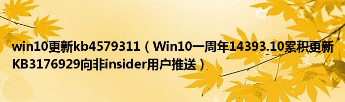 大家好,今天小悦来为大家解答以上问题。win10更新kb4579311,Win10一周年14393.10累积更新KB3176929向非insider用户推送很多人还不知道,现在让我们一起来看看吧!