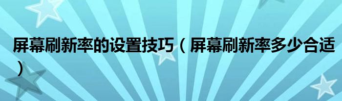 大家好,今天小悦来为大家解答以上问题。屏幕刷新率的设置技巧,屏幕刷新率多少合适很多人还不知道,现在让我们一起来看看吧!