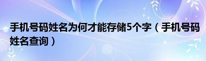 大家好,小飞来为大家解答以上问题,手机号码姓名为何才能存储5个字,手机号码姓名查询很多人还不知道,现在让我们一起来看看吧!