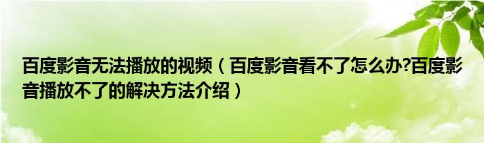 大家好,今天小悦来为大家解答以上问题。百度影音无法播放的视频,百度影音看不了怎么办?百度影音播放不了的解决方法介绍很多人还不知道,现在让我们一起来看看吧!