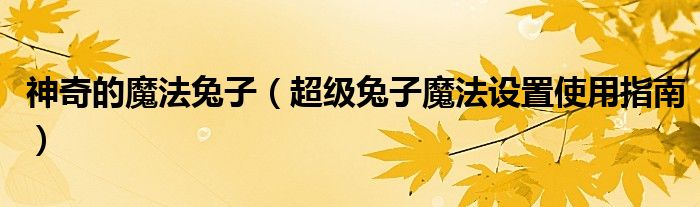 大家好,今天小悦来为大家解答以上问题。神奇的魔法兔子,超级兔子魔法设置使用指南很多人还不知道,现在让我们一起来看看吧!