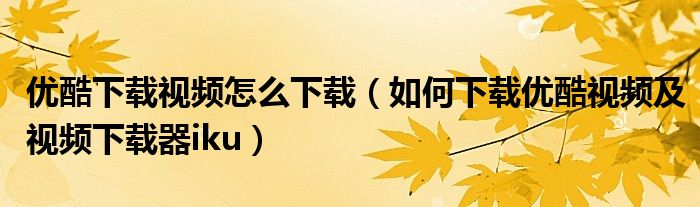 大家好,今天小悦来为大家解答以上问题。优酷下载视频怎么下载,如何下载优酷视频及视频下载器iku很多人还不知道,现在让我们一起来看看吧!