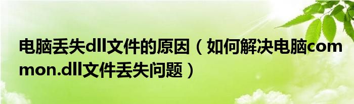大家好,今天小悦来为大家解答以上问题。电脑丢失dll文件的原因,如何解决电脑common.dll文件丢失问题很多人还不知道,现在让我们一起来看看吧!
