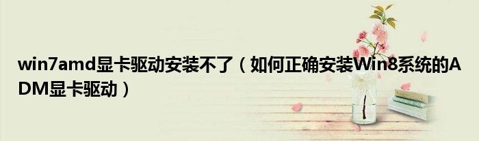 大家好,今天小悦来为大家解答以上问题。win7amd显卡驱动安装不了,如何正确安装Win8系统的ADM显卡驱动很多人还不知道,现在让我们一起来看看吧!