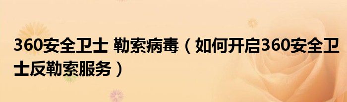 大家好,小太来为大家解答以上问题。360安全卫士 勒索病毒,如何开启360安全卫士反勒索服务很多人还不知道,现在让我们一起来看看吧!