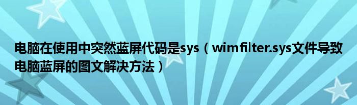 大家好,小太来为大家解答以上问题。电脑在使用中突然蓝屏代码是sys,wimfilter.sys文件导致电脑蓝屏的图文解决方法很多人还不知道,现在让我们一起来看看吧!