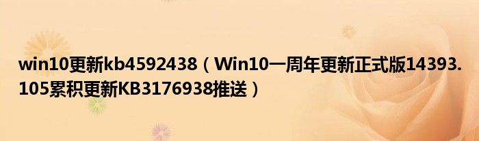 大家好,小太来为大家解答以上问题。win10更新kb4592438,Win10一周年更新正式版14393.105累积更新KB3176938推送很多人还不知道,现在让我们一起来看看吧!