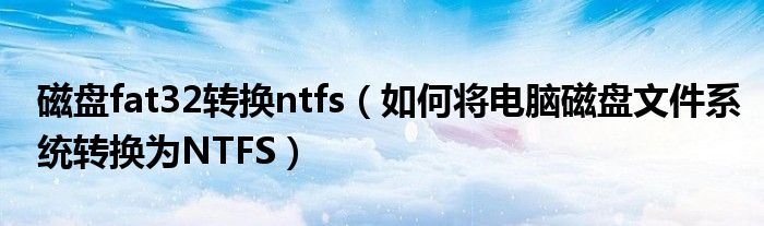 大家好,小太来为大家解答以上问题。磁盘fat32转换ntfs,如何将电脑磁盘文件系统转换为NTFS很多人还不知道,现在让我们一起来看看吧!