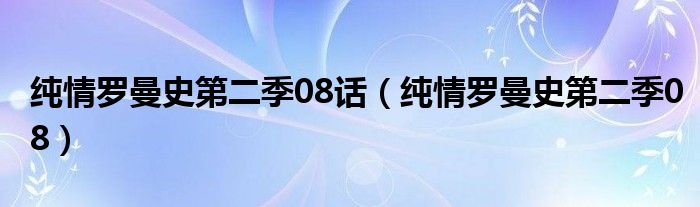 纯情罗曼史第二季08话,纯情罗曼史第二季08这个很多人还不知道,小飞来为大家解答以上的问题。现在让我们一起来看看吧!