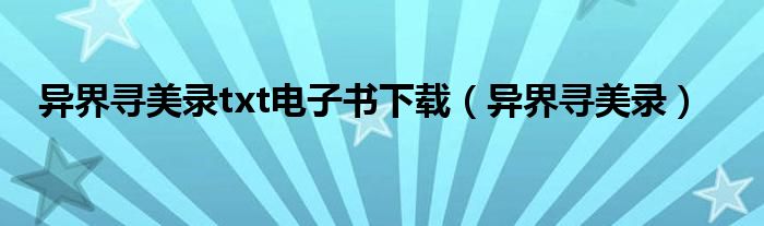异界寻美录txt电子书下载,异界寻美录这个很多人还不知道,小飞来为大家解答以上的问题。现在让我们一起来看看吧!