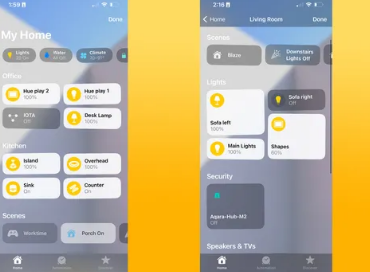 在新的家庭应用程序中,用于自定义智能家居设备、房间和收藏夹在屏幕上的显示方式的选项已大大改进。您可以重新排列您的主视图,将您最常用的房间放在最上面,或者指定您的收藏夹或相机源是您打开应用程序时首先看到的内容。