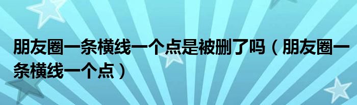 大家好,慧慧来为大家解答以上问题,朋友圈一条横线一个点是被删了吗,朋友圈一条横线一个点很多人还不知道,现在让我们一起来看看吧!