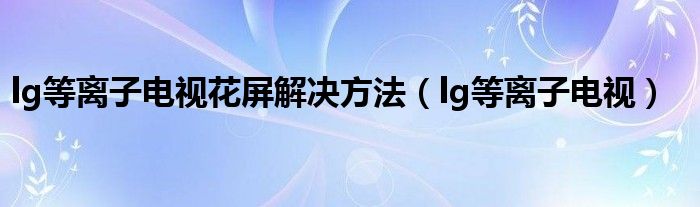 大家好,慧慧来为大家解答以上问题,lg等离子电视花屏解决方法,lg等离子电视很多人还不知道,现在让我们一起来看看吧!