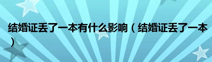 结婚证丢了一本有什么影响,结婚证丢了一本这个很多人还不知道,小飞来为大家解答以上的问题。现在让我们一起来看看吧!