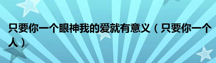 大家好,慧慧来为大家解答以上问题,只要你一个眼神我的爱就有意义,只要你一个人很多人还不知道,现在让我们一起来看看吧!