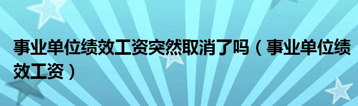 事业单位绩效工资突然取消了吗,事业单位绩效工资这个很多人还不知道,小飞来为大家解答以上的问题。现在让我们一起来看看吧!