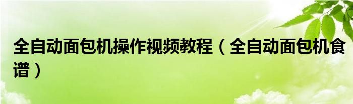 大家好,慧慧来为大家解答以上问题,全自动面包机操作视频教程,全自动面包机食谱很多人还不知道,现在让我们一起来看看吧!