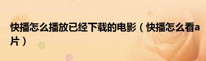 大家好,慧慧来为大家解答以上问题,快播怎么播放已经下载的电影,快播怎么看a片很多人还不知道,现在让我们一起来看看吧!