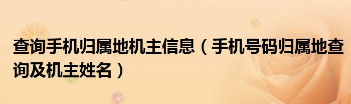大家好,慧慧来为大家解答以上问题,查询手机归属地机主信息,手机号码归属地查询及机主姓名很多人还不知道,现在让我们一起来看看吧!