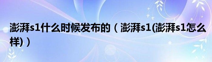 大家好,小常来为大家解答以上问题。澎湃s1什么时候发布的,澎湃s1(澎湃s1怎么样)很多人还不知道,现在让我们一起来看看吧!