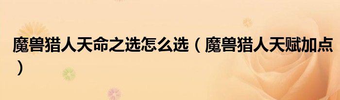 大家好,慧慧来为大家解答以上问题,魔兽猎人天命之选怎么选,魔兽猎人天赋加点很多人还不知道,现在让我们一起来看看吧!