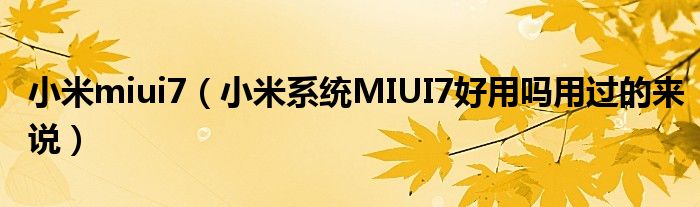 大家好,小常来为大家解答以上问题。小米miui7,小米系统MIUI7好用吗用过的来说很多人还不知道,现在让我们一起来看看吧!