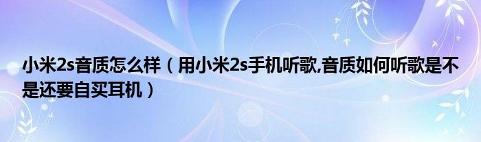 1,用小米2s手机听歌,音质如何?听歌是不是还要自买耳机?:音质很好,原机是不带耳机的,得自己购买,或者弄个适配的原厂其他耳机也可以,我用三星的就能插上