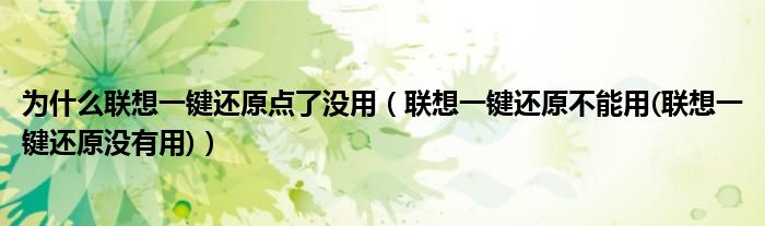 大家好,小常来为大家解答以上问题。为什么联想一键还原点了没用,联想一键还原不能用(联想一键还原没有用)很多人还不知道,现在让我们一起来看看吧!