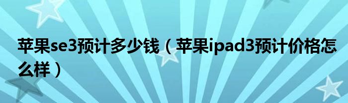 大家好,小常来为大家解答以上问题。苹果se3预计多少钱,苹果ipad3预计价格怎么样很多人还不知道,现在让我们一起来看看吧!